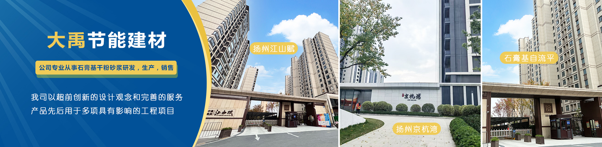 揚州市大禹節(jié)能建材科技有限公司成立于2005年9月,位于聯(lián)合國宜居城市---江蘇省揚州市,地處江都經(jīng)濟開發(fā)區(qū),與揚、鎮(zhèn)、泰三市接壤,交通十分便捷。公司是專業(yè)從事石膏基干粉砂漿研發(fā),生產(chǎn),銷售一體化的綜合性科技型企業(yè),為國家標準GB/T2862-2012《抹灰石膏》的參編單位。 公司擁有國內一流的特種砂漿生產(chǎn)線,并配有各種先進的檢測儀器,年生產(chǎn)能力可達10萬噸。各崗位管理及技術人員齊備,對產(chǎn)品···